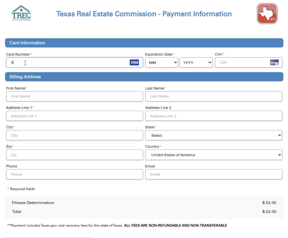 If you have questions about how to make payments online, contact us. Please note that to protect your security, TREC staff cannot accept financial information over the phone or complete a payment on your behalf.